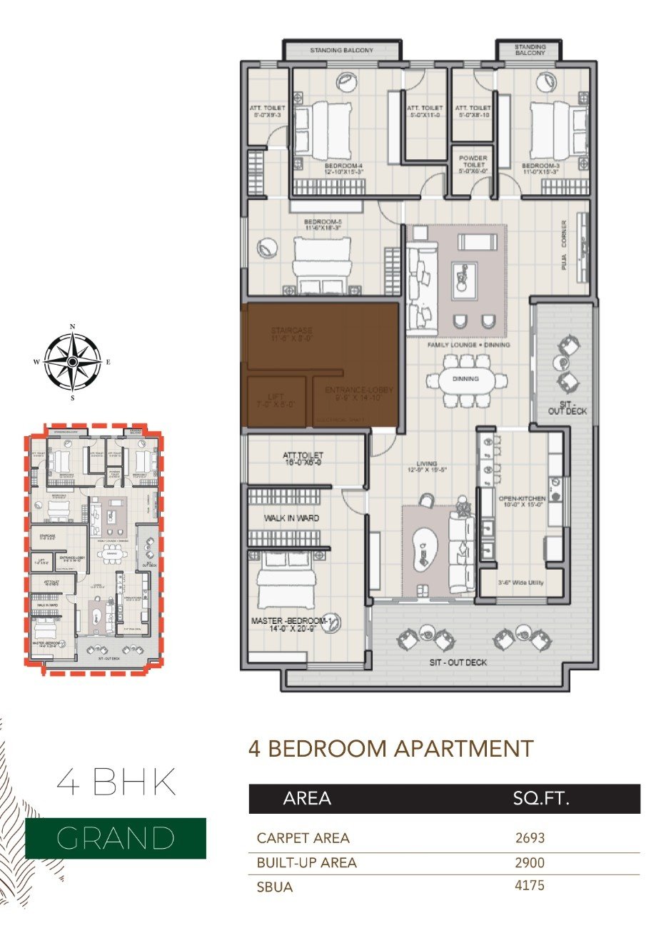 Land Area Expansive Deck Balconies 6 Ft. Wide In 4bhks 10 Ft. Wide In 4.5 & 5bhks